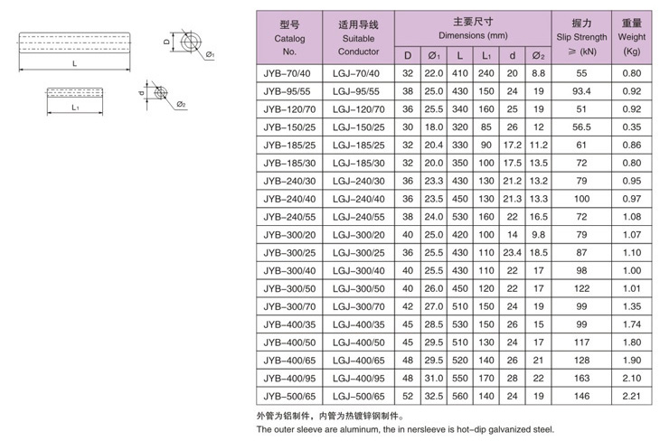 | 接續(xù)管(鋼芯鋁絞線用、爆壓塔接) |